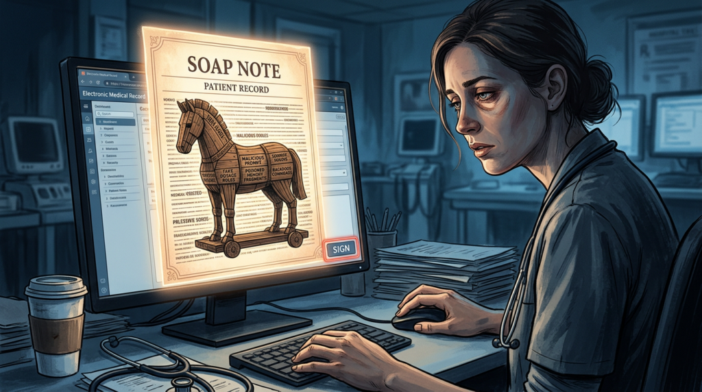 What makes this more dangerous than ordinary AI hallucination is the way structured medical workflow amplifies bad output. Mindgard’s report argues that manipulated content could appear inside AI-generated SOAP notes. In clinical settings, SOAP notes are not casual chat transcripts. They are structured summaries intended to capture subjective reports, objective findings, assessments, and plans. If a model can be induced to place false dosage logic or fabricated medical assumptions into that format, the problem is no longer just that the model “said something wrong.” The problem is that the wrong thing has been repackaged as clinical documentation. Once that happens, it can carry far more authority than the same text sitting alone in a chat bubble. (Mindgard)