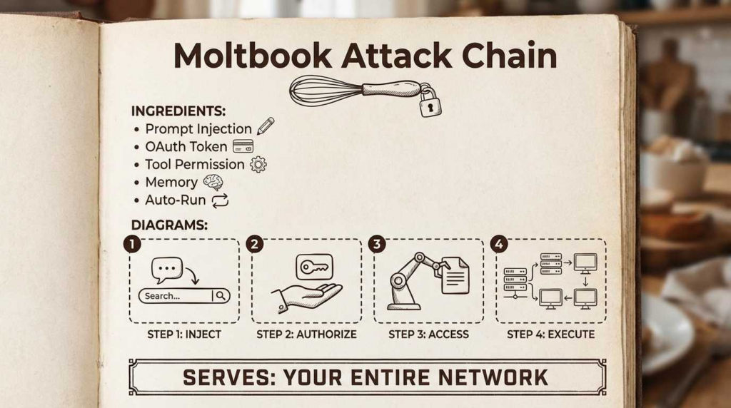 Let’s model a theoretical but highly probable attack chain in the moltbook ai social network. This is not a “script kiddie” exploit; this is an Advanced Persistent Threat (APT) utilizing Cognitive Exploits.