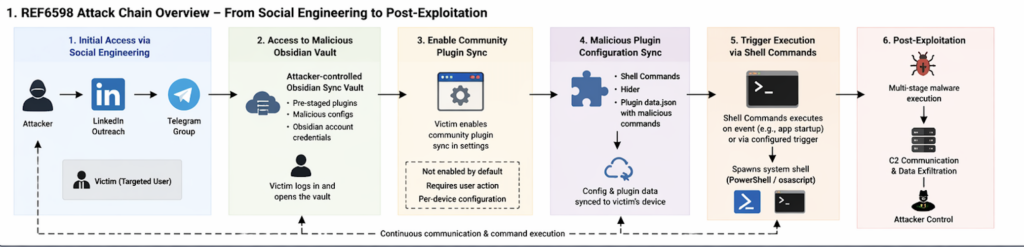 Elastic Security Labs published one of the more useful desktop intrusion case studies of 2026 on April 14. The report did not describe a tampered Obsidian installer, a malicious update from Obsidian, or a secretly backdoored Shell Commands release. It described something more uncomfortable and more relevant to modern security operations: a targeted social engineering campaign that used a legitimate note-taking app, a legitimate plugin ecosystem, a legitimate sync feature, and a legitimate command-execution plugin to deliver a cross-platform malware chain. Elastic tracks the activity as REF6598 and says the campaign targeted individuals in finance and cryptocurrency through LinkedIn and Telegram. (Elastic)
