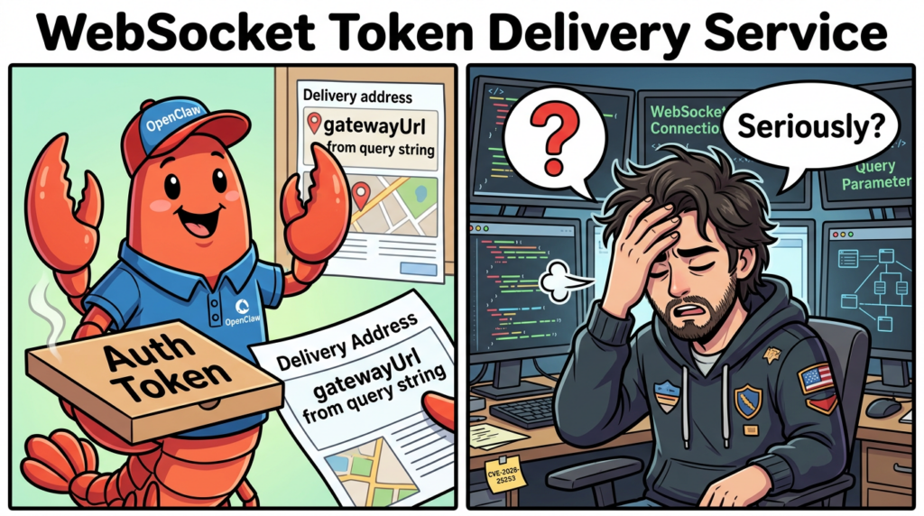 | CVE-2026-25253 | gatewayUrl from query string, auto WebSocket connection, token sent | “one click” style token exposure via untrusted parameterization | upgrade past affected versions, eliminate auto-connect behavior (NVD) |