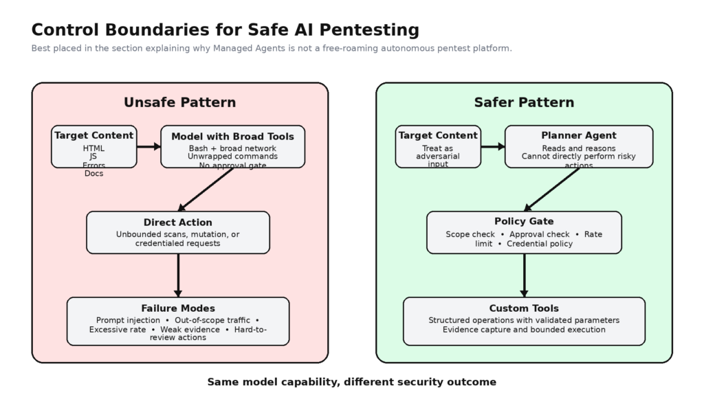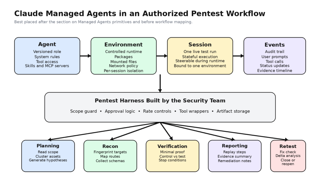This table is a synthesis of Anthropic’s documented interfaces, not a claim that Anthropic markets the platform this way. The point is that Managed Agents gives security teams a usable execution grammar for building pentest workflows, especially where the hard part is not “find a CVE” but “preserve state, keep the scope clean, constrain actions, and retain proof.” (platform.claude.com)