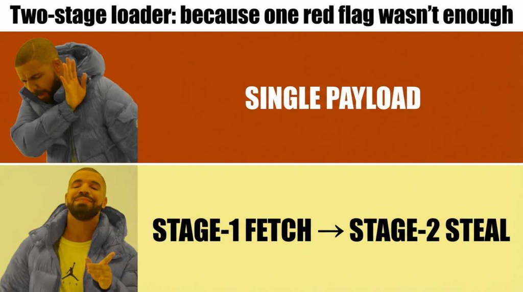 The Stage-1 script downloads the payload (often disguised as a .jpg, .css, or binary blob) to a temporary directory (e.g., /tmp/.X11-unix/ or ~/.cache/).