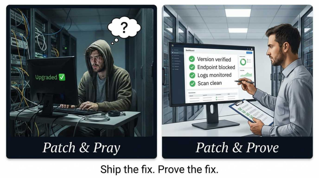 If your pain isn’t “patch a single host,” but “close this across a fleet and prove it to everyone who asks,” the most expensive part of CVE response is usually the Arbeitsablauf: asset discovery, verification, evidence, and repeatability.
