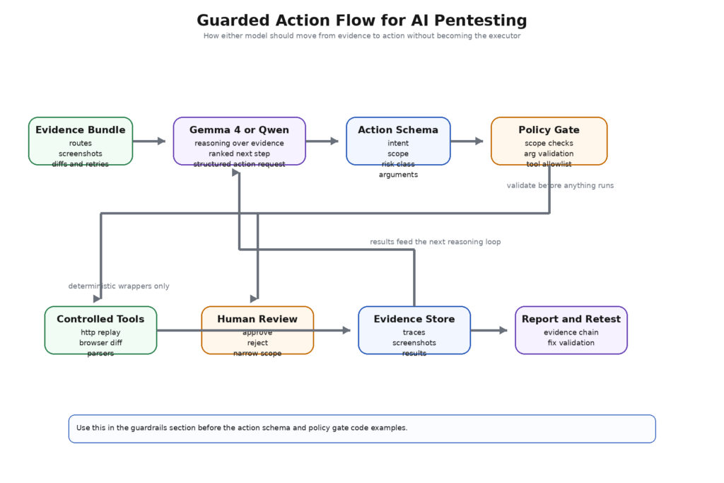 This kind of wrapper is not glamorous, but it is what makes AI pentesting defensible. Public Penligent material on agentic security and AI pentesters has the same underlying thesis even when it is not talking about any specific model family: the path from raw signal to action has to be governed, reviewable, and evidence-backed. That is the right lens for comparing Gemma 4 and Qwen. The question is not who can call more tools. It is who fits more cleanly into the control model you can actually defend. (Sträflich)