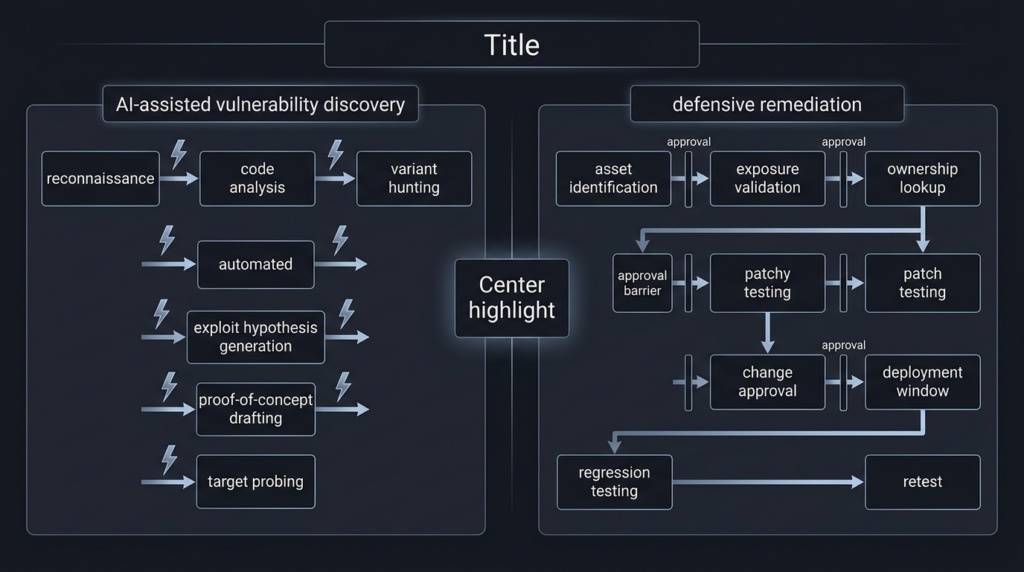 That is why this moment feels less like a routine process tweak and more like asymmetric warfare. The offensive side increasingly gets help compressing the front half of the kill chain: variant hunting, exploit hypothesis generation, endpoint probing, and proof-of-concept drafting. The defensive side still has to answer slower questions that are tied to real systems: do we run the affected product, is the vulnerable feature reachable, is the exposed instance internet-facing, is a patch available, what breaks if we apply it, who owns the service, and how do we prove the risk is closed after remediation. AI is cheapening discovery faster than organizations are speeding up verification and remediation. Google Cloud and OpenAI are both already framing the next phase of cyber defense around exactly that pressure point. (Google Wolke)