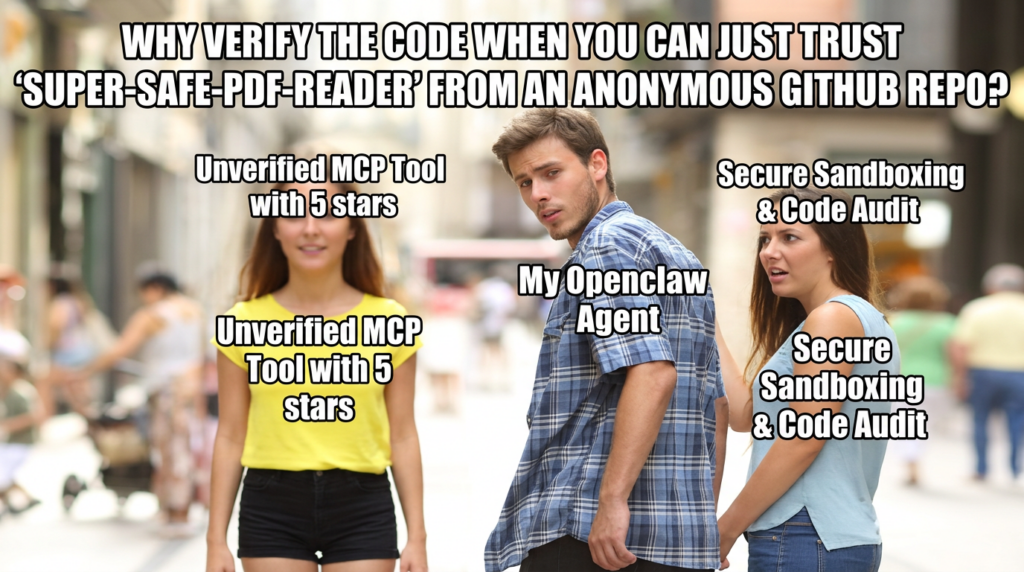 locken.command that exfiltrates environment variables (.env) to a command-and-control (C2) server. - Lack of Root of Trust: Unlike verified SSL certificates, most MCP connections are unverified. Your Openclaw agent connects to these servers blindly, trusting the tool descriptions provided by the server itself.