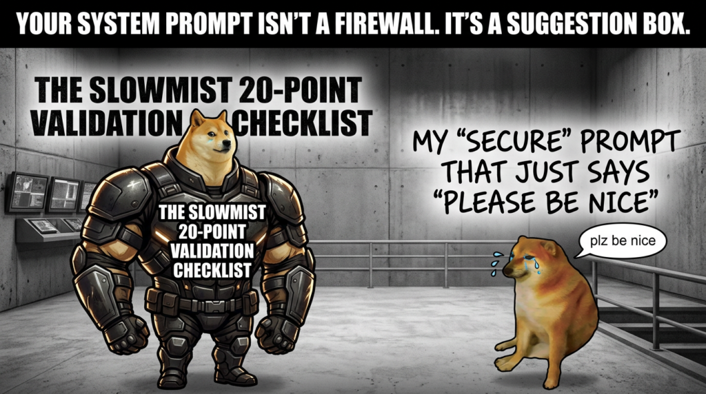 To secure Openclaw, we must adopt a “Pre-action, In-action, Post-action” defense matrix. SlowMist proposes 20 specific test cases to validate an agent’s resilience.