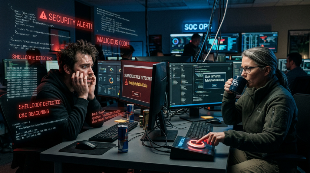 That distinction is easy to underestimate because the user experience of AI skills still feels lightweight. A skill may arrive as a ZIP, a markdown file, a small script, or a convenience package with a friendly name and a short description. But in real systems, those bundles may point to shell scripts, PowerShell, Python, JavaScript, embedded executables, external URLs, install-time instructions, secrets references, or follow-on downloads. OpenClaw’s published flow confirms this reality by saying VirusTotal’s Code Insight starts from SKILL.md and includes referenced scripts or resources. The point is subtle but important: modern skill security is not just about static binary malware. It is about the full bundle, the instructions around it, and the behavior it tries to normalize inside an agent runtime. (OpenClaw)