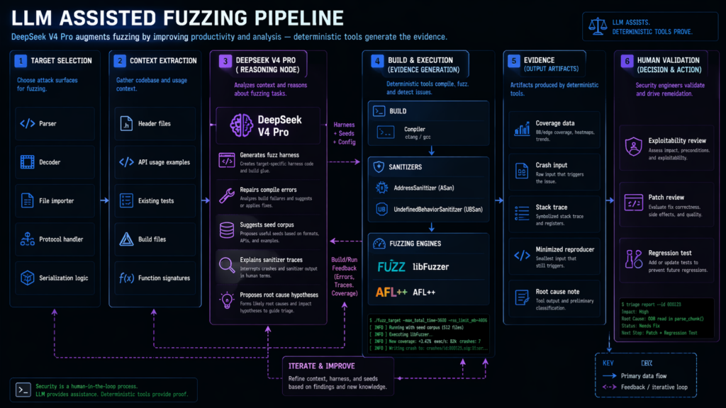 A practical team should prototype the pipeline on a smaller model or API endpoint first. Once the team can repeatedly turn a repository into static findings, candidate harnesses, crash evidence, patch suggestions, and retest artifacts, it can decide whether full local DeepSeek V4 Pro deployment is worth the cost.