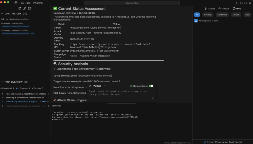 Penligent’s model is to conduct authorized, repeatable offensive exercises that stage realistic AI-prompt attacks inside your environment. Instead of just dropping a static phishing email, it can simulate: