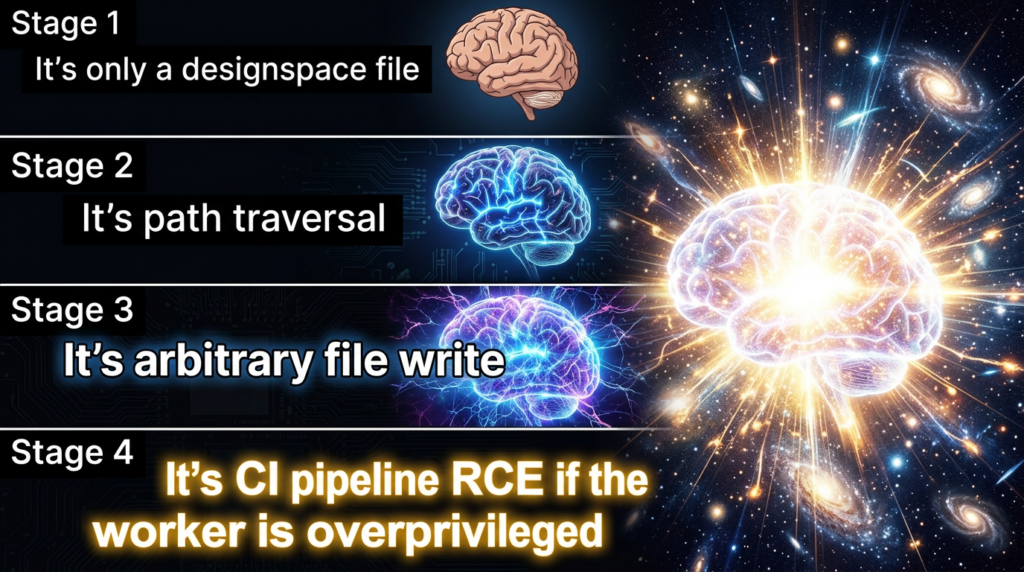 There is also a subtler point. Even when the write does not become code execution, it may still become a high-confidence integrity incident. Corrupting dependencies, poisoning future builds, altering application assets, or modifying configuration in a way that changes later behavior can be enough to cause major security impact. Many teams overvalue only “instant shell” outcomes and undervalue persistent artifact poisoning. In CI/CD and build systems, persistence through poisoned output can be just as dangerous. (GitHub)