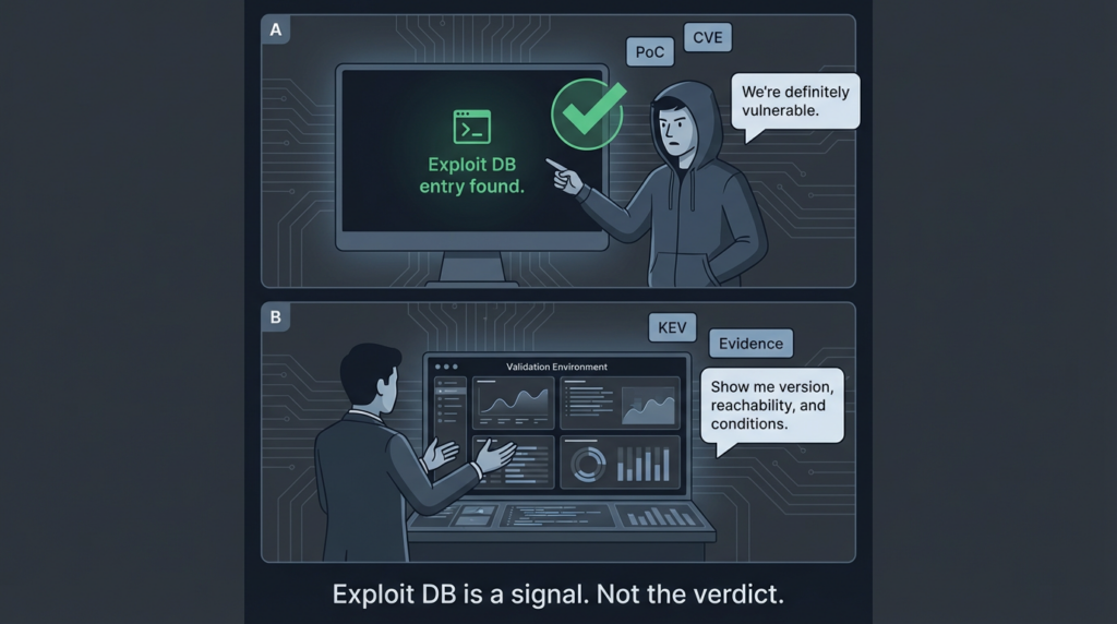 This is exactly why experienced teams do not ask only “Is there an Exploit-DB entry?” They ask: