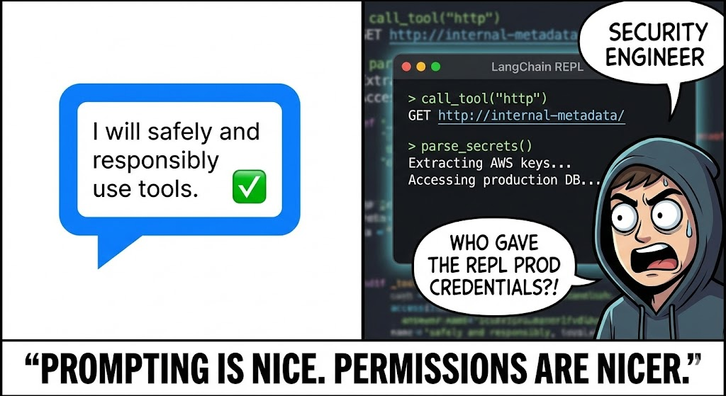 Les PythonREPLTool dans LangChain est conçu pour permettre aux agents d'effectuer des calculs mathématiques ou des analyses de données. Pour éviter les abus, les premières versions ont mis en œuvre un "contrôle de sécurité" qui analyse le code Python généré avant son exécution, à la recherche d'importations dangereuses telles que os, sysou sous-processus.