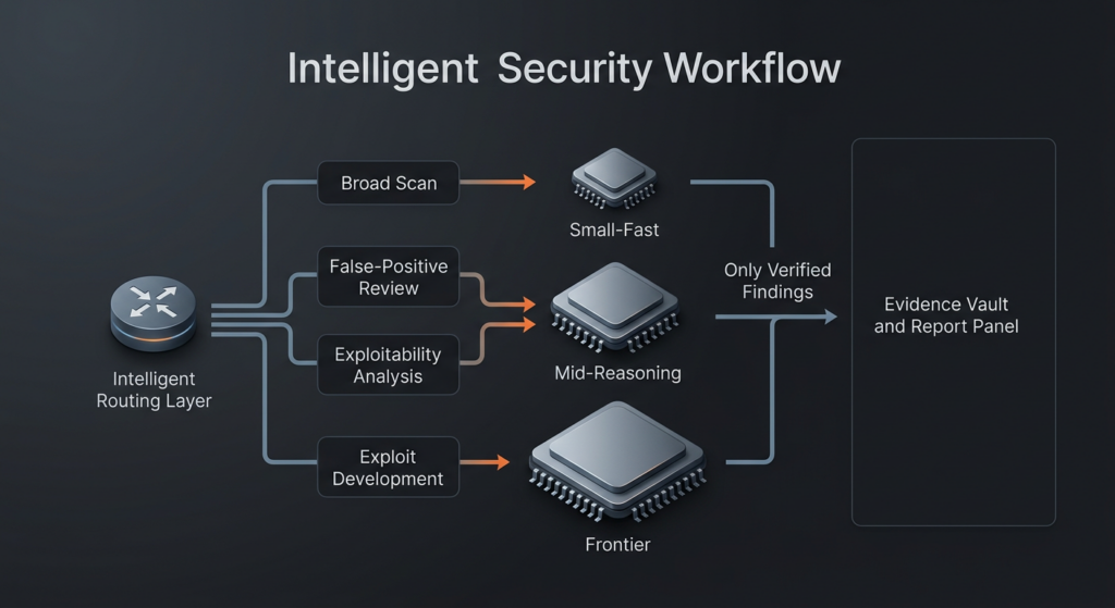 A useful AI pentesting architecture therefore looks less like a monolith and more like a relay team. A fast and cheap model can often do the first-pass work of inventorying endpoints, clustering routes, spotting framework patterns, or identifying code regions that are worth escalation. A somewhat stronger reasoning model can do false-positive filtering, exploitability ranking, and hypothesis cleanup. The most expensive model should not be your default for everything. It should be your escalation tier for the places where the search space is narrow enough and the expected value is high enough that frontier-level reasoning is worth paying for. That is the practical version of your core point: the goal is not to rent the smartest model in the world on every step. The goal is to express the right amount of intelligence at the right stage under a workflow that does not waste coverage, money, or reviewer attention. (AISLE)