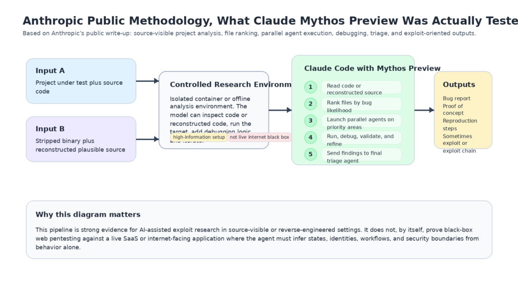 This is why “white-box strength” is not an insult. It is a precise job description. Claude Mythos Preview appears to be very strong at exploit research with high-information inputs. That is a major milestone. It just is not equivalent to proving black-box web pentesting against the internet.