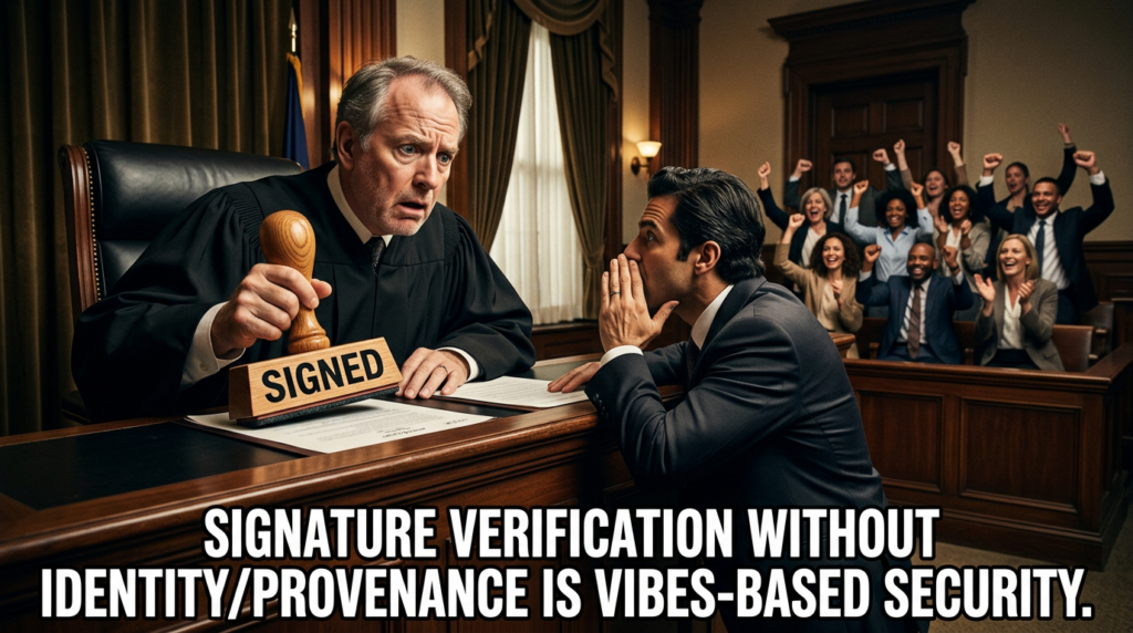 - signature verification with explicit trust roots