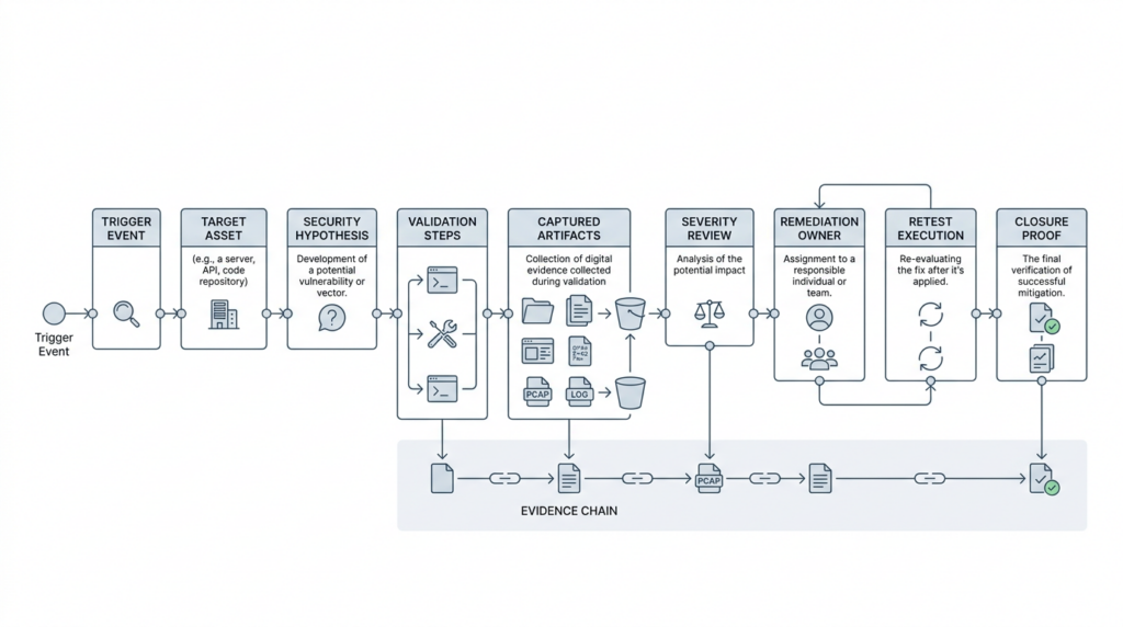 That means each finding in a continuous red teaming program should have a minimum evidence bundle: trigger event, target asset, expected security invariant, actual observed behavior, exact validation steps, artifacts, remediation owner, retest timestamp, and final disposition. If a human cannot replay the finding or a machine cannot schedule the retest, the output is too weak for a high-frequency program.