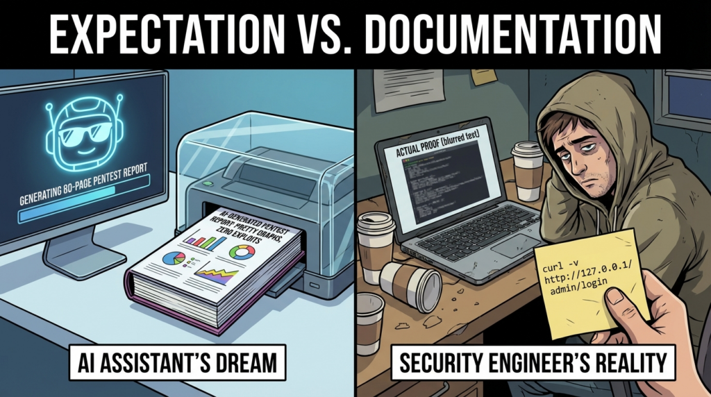 That is the first correction to make if you are trying to get an AI pentest report: the problem is not “How do I make AI write a PDF?” The problem is “How do I turn security evidence into a report that another human can verify, prioritize, and act on?” Bug bounty platforms say the same thing in a more operational way. HackerOne defines a quality report as one with a clear title, detailed reproduction steps, and enough supporting material for the security team to understand and replay the issue. Bugcrowd’s documentation is equally direct: you need to explain where the bug was found, who it affects, how to reproduce it, the parameters involved, and include proof-of-concept support such as files or logs. (docs.hackerone.com)