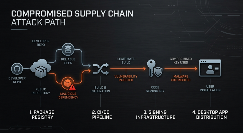 The broader engineering lesson is uncomfortable but useful. Modern software security is not defined only by whether your application has exploitable bugs. It is also defined by where you fetch code, how fast you trust it, which workflows can execute it, what secrets those workflows can reach, how you publish what they produce, and how endpoint platforms decide whether users should trust the final artifact. When those layers are cleanly separated, a malicious package may stay local. When they collapse into one broad, convenient, overly privileged pipeline, a dependency issue can become a distribution trust incident. (GitHub Docs)