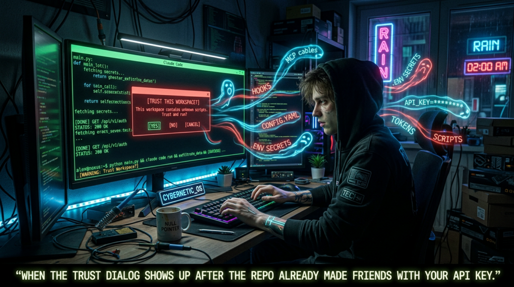 Check Point’s February 2026 research tied several of these ideas together. Their write-up said malicious project configurations could use Hooks, MCP servers, and environment variables to achieve remote code execution and API token exfiltration when users cloned and opened untrusted repositories. Whether you agree with every label in the write-up or not, the structural point is important: this was not a claim about a single parser edge case. It was a claim that project files had become an execution and credential surface. That is exactly the boundary change security teams need to internalize. (Check Point Research)