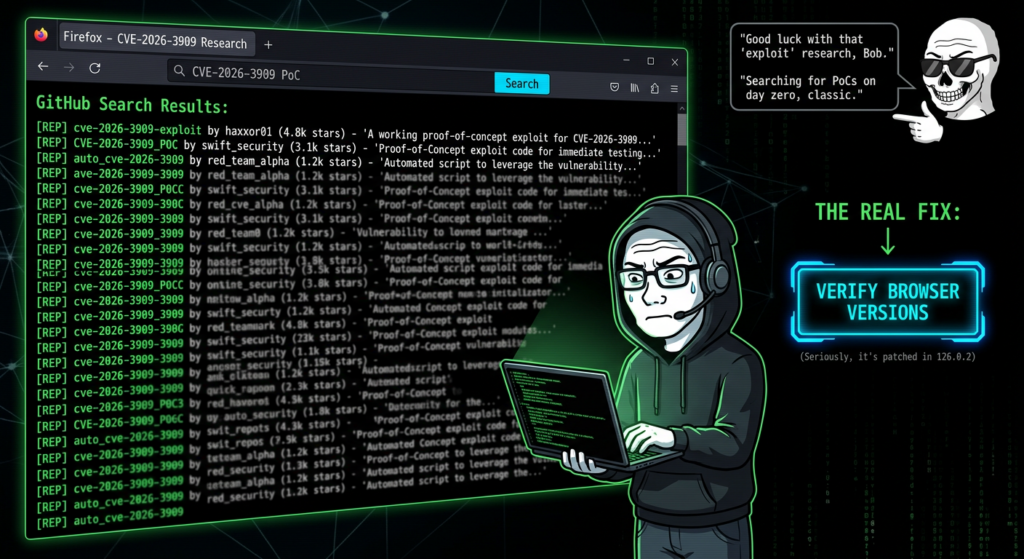 The honest answer to the search term “cve-2026-3909 poc” is not a download link. It is a state assessment.