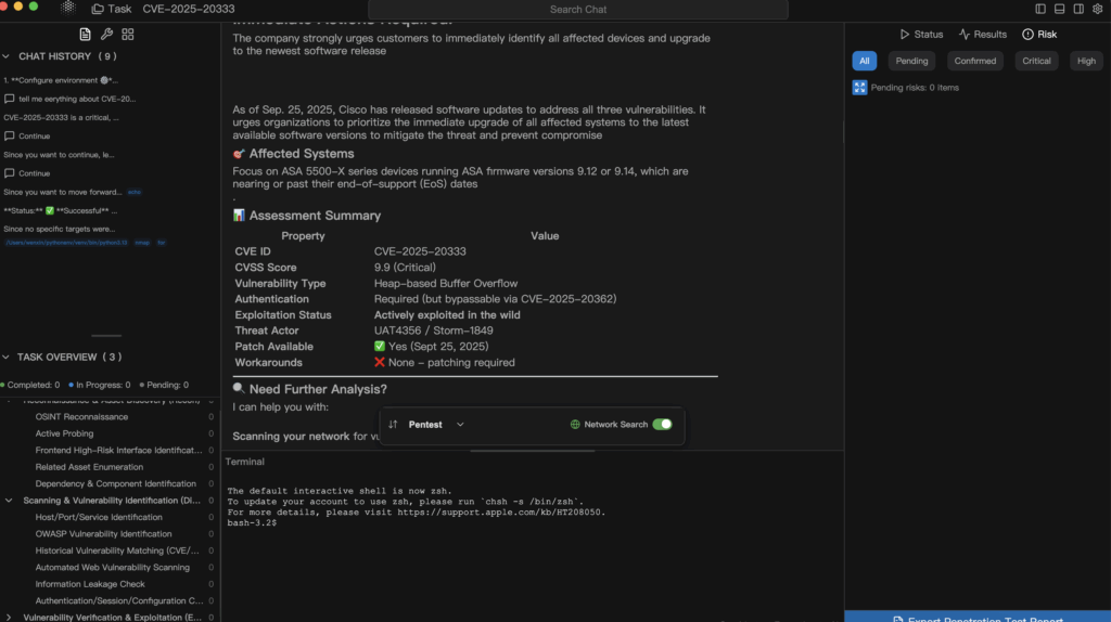 Penligent doesn’t ask you to abandon your toolchain. It simply glues evidence-first automation to the way you already work. Agents enumerate and mutate parameters inside authenticated sessions; engineers adjudicate suspicious behavior in real time; successful paths become organization-level regression tests that run automatically the next time you roll an ASA/FTD upgrade. And when you need to convince a change board, you anchor to the Cisco advisory, the NVD record, and the continued attacks page—the same sources you should be citing today.