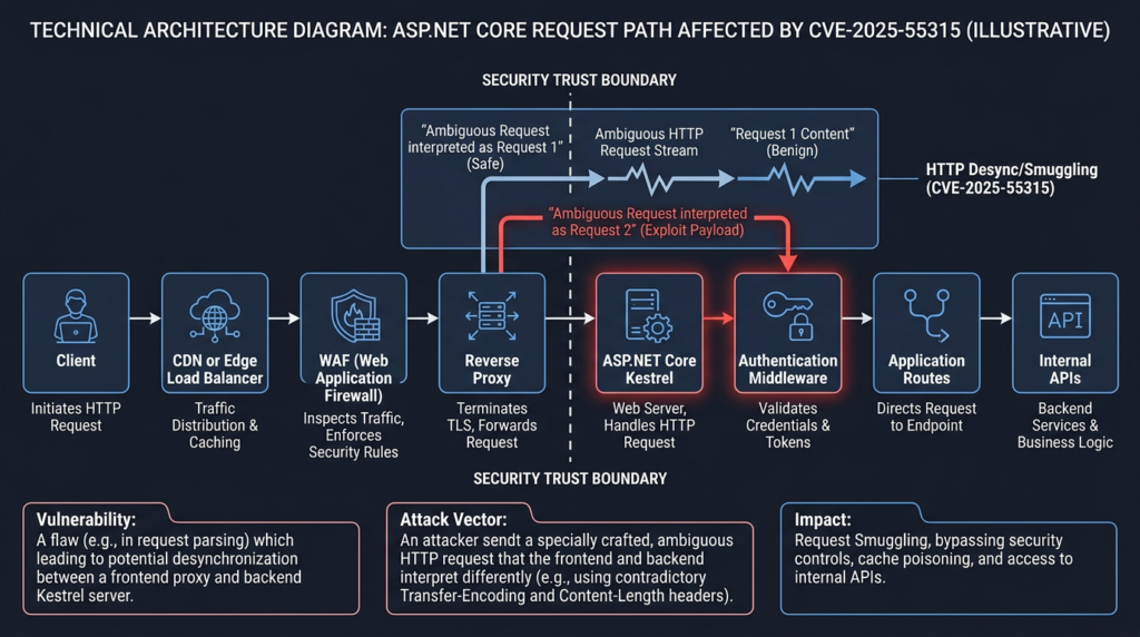 HTTP request smuggling is old, but CVE-2025-55315 matters because it sits inside a platform component that many teams do not think of as part of their application security boundary. Kestrel is not just plumbing. It decides where one request ends and the next one begins. When that decision is ambiguous, everything above it becomes easier to confuse.