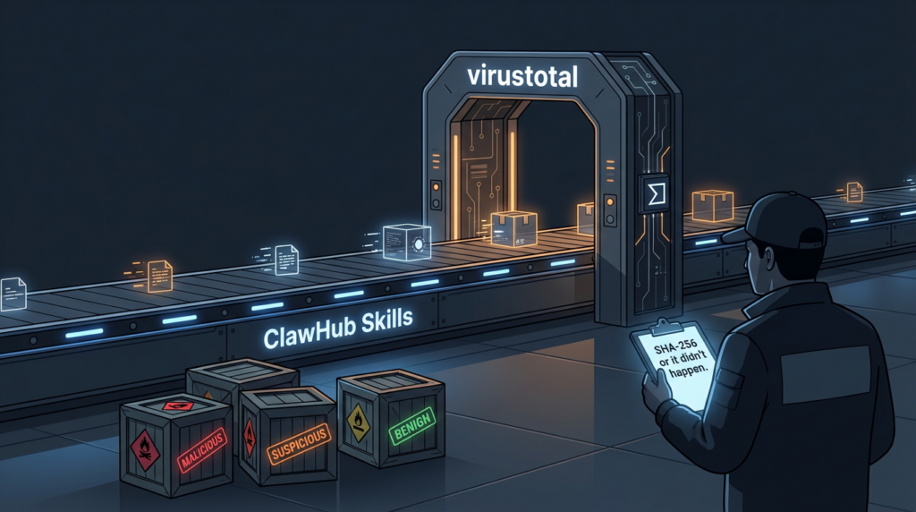 On February 7, 2026, OpenClaw announced a partnership with VirusTotal to scan every skill published to ClawHub, its skill marketplace. The short version is straightforward: a skill is packaged, hashed (SHA-256), and checked against VirusTotal; if there’s no prior record, the bundle is uploaded for scanning and analysis, including VirusTotal’s Code Insight feature. Skills judged benign can be approved automatically; suspicious skills can be labeled with warnings; malicious skills can be blocked. The intent is to add an automated layer of defense against a rapidly growing “agent skill” supply chain that has already been abused by attackers.