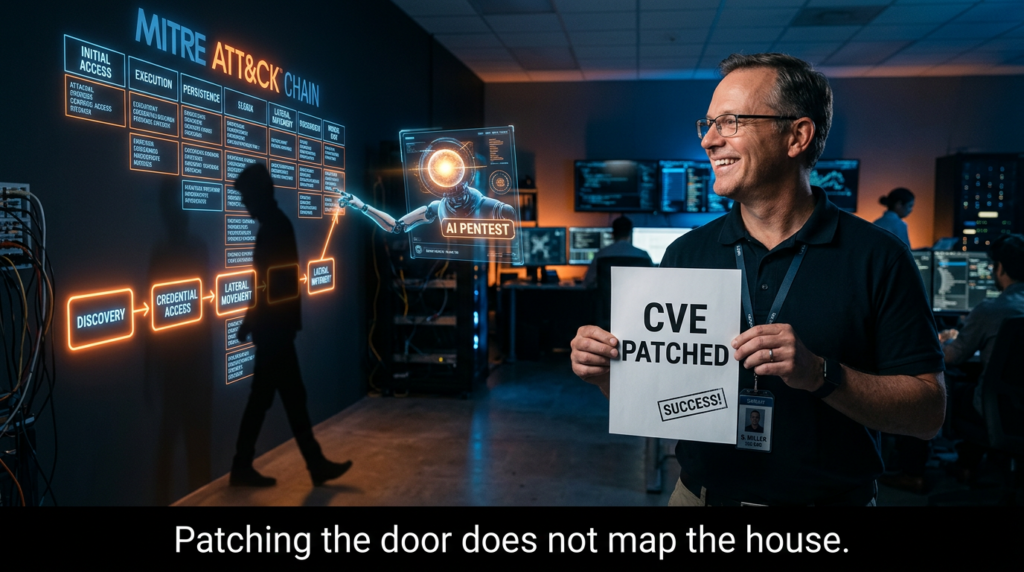 This matters for pentest ai because the strongest systems in the category are not just enumerators. They are translators. They translate a CVE alert into a sequence of possible behaviors, then translate validated activity back into something defenders can measure. Penligent’s own ATT&CK article phrases it well: CVE tells you the door; ATT&CK tells you the path. That line works because it solves a real operational problem. Teams often patch, maybe add an IOC or WAF rule, and then move on without ever modeling how the attacker would continue if the initial exploit landed. The result is a defensive program that knows names but not movement. (펜리전트)