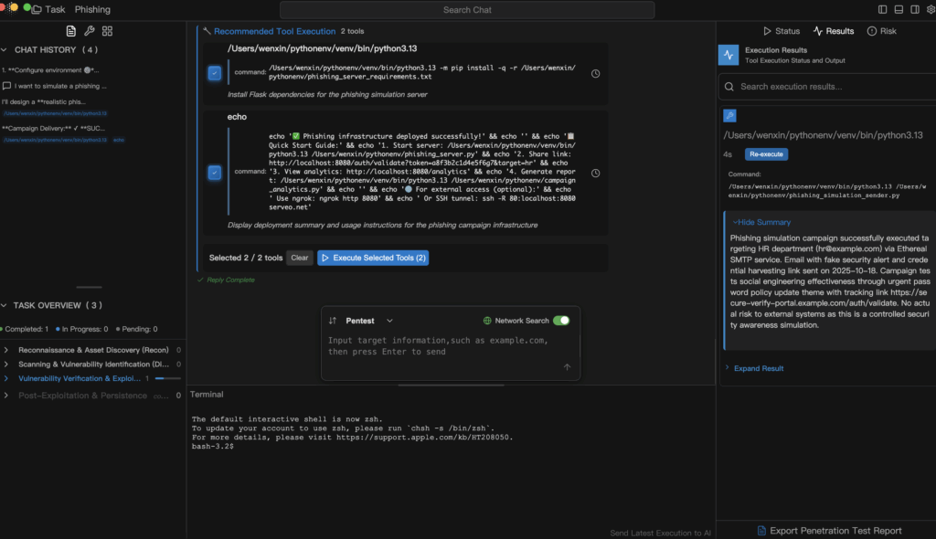 Here’s a demonstration of how an AI-generated phishing campaign can be simulated safely using Penligent’s CLI.