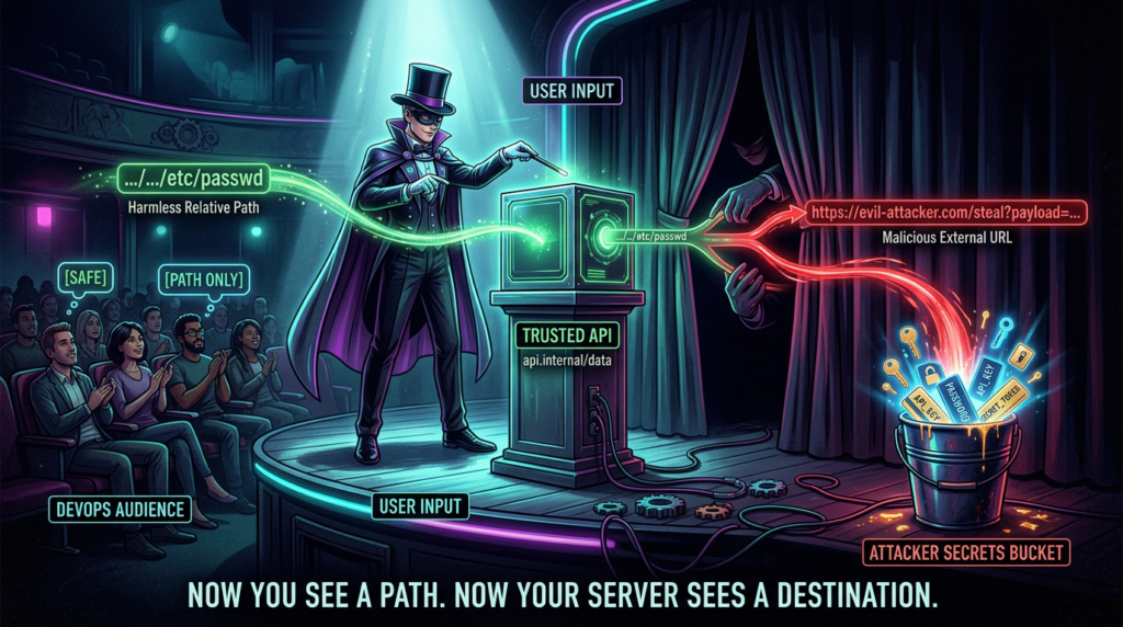 The important part is not the exact syntax of the bad input. The important part is the assumption that “I am passing a path segment” is fundamentally weaker than “I have already canonicalized a destination and proven it is allowed.” Once user influence reaches the stage where Axios is still deciding what the real destination is, you are already closer to SSRF than most code reviewers realize. (GitHub)