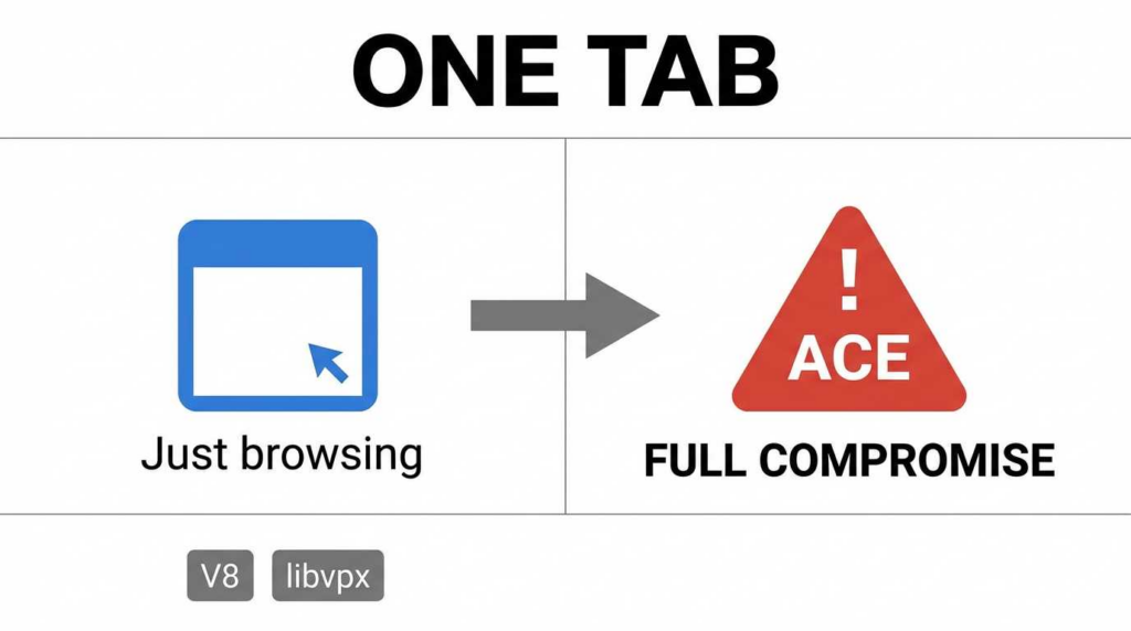 The Event: Google Chrome and Chromium-based browsers (Edge, Brave, Opera) are frequently targeted by critical security flaws known as Chrome Arbitrary Code Execution (ACE) vulnerabilities. These exploits typically originate in two core components: the V8 JavaScript Engine (specifically via Type Confusion) and the libvpx media decoding library (via Heap Buffer Overflows).