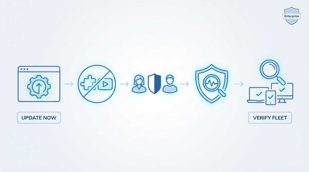 Enforce: Apply a “Force Relaunch” policy for any browser older than 24 hours behind the stable channel.