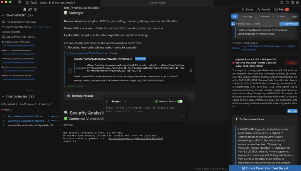 In the world of automated penetration testing, missing an unmanaged or hidden application means an attack vector goes untested. Penligent ensures that your pen-test scope isn’t limited to known assets—but includes every application your organization runs, known or shadow. This creates a loop of discovery → vulnerability → remediation → validation, aligning with best cyber-hygiene practice.
