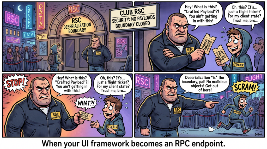 React2Shell is a reminder that “UI framework” is no longer a client-only concern. RSC makes the UI layer a server-executed substrate, which means it inherits the same engineering discipline you’d apply to RPC endpoints.