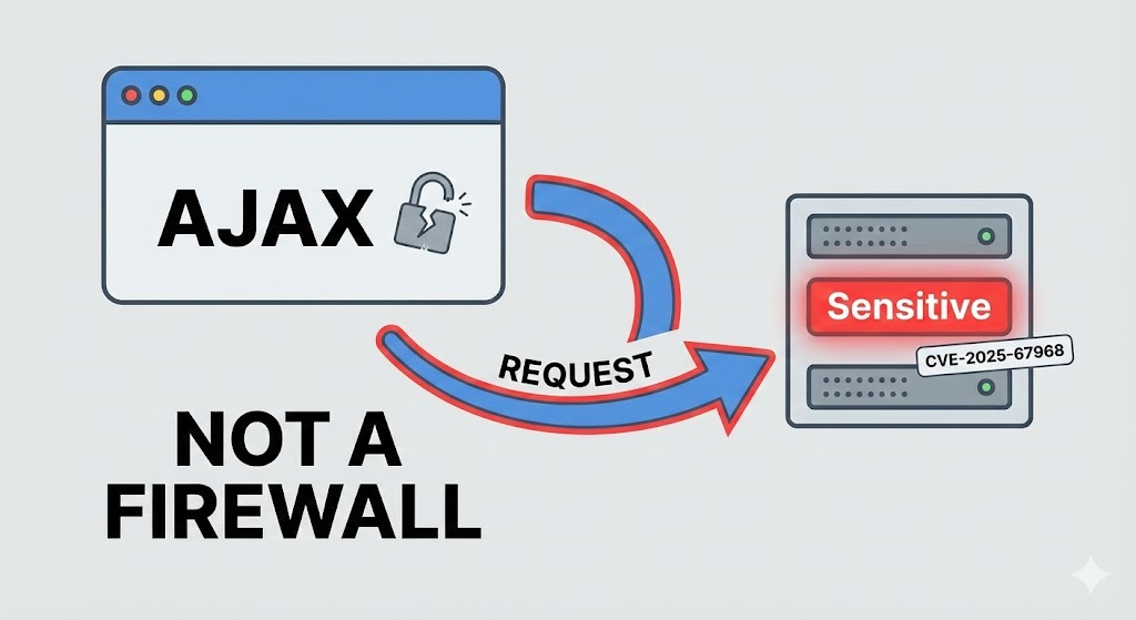 In the WordPress permission model, a “Subscriber” is technically logged in. Therefore, they have access to the same AJAX endpoints as an Administrator, unless the code explicitly forbids it. CVE-2025-67968 exists in this invisible gap between “Authenticated” and “Authorized.”