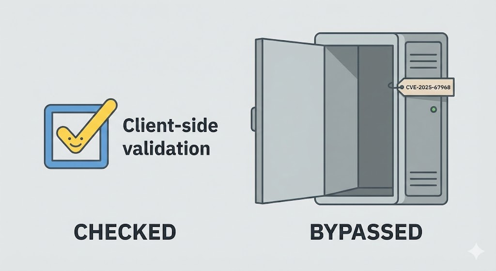 Applying the vendor patch for CVE-2025-67968 is necessary but insufficient. You must harden the environment against the next logical flaw.