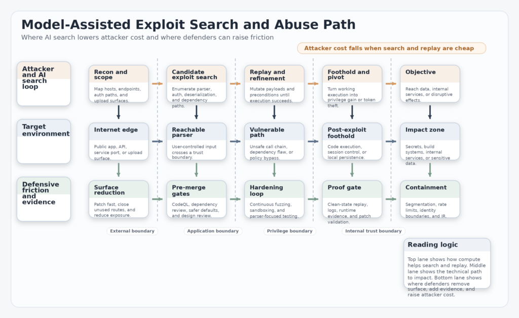 The strongest reading is narrower and still transformative. The parts of security that resemble verifiable search problems are being compressed into budget problems. Vulnerability discovery, exploit variant generation, harness generation, crash triage, chain construction, and replayable validation all benefit from massive iterative search. These were never purely human intuition tasks. They were human intuition plus repetition. AI changes the repetition term first. (Drew Breunig)
