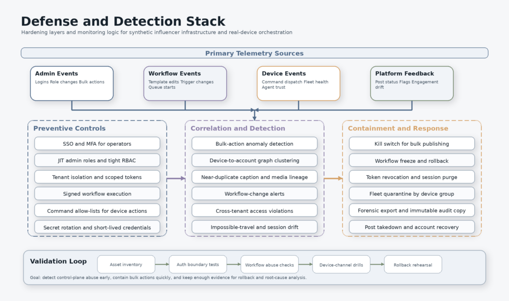 For trust and safety teams, the lesson is to shift some attention away from “does this post look AI-generated” and toward “what technical and behavioral signals indicate a coordinated account-and-device operation.” For security teams, the lesson is to treat operator backends and workflow builders as high-value targets rather than internal convenience tools. For buyers, the lesson is to audit any vendor selling scale, automation, and influence under creator-friendly language. For researchers, the lesson is that stories like this are valuable because they briefly reveal the control plane that usually stays hidden behind the output.